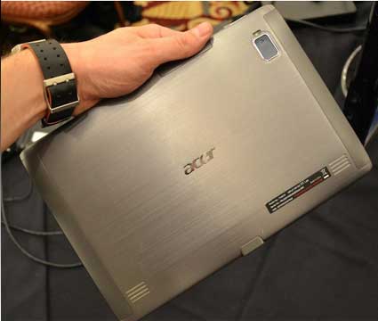 Iconia Tab with 5 Megapixel camera in the rear, integrated flash. Backside metal machine, very solid. Two speakers are arranged a little bit lower, this design can make people concerned about sound quality, but in reality, the machine for hours and not to interfere with the layout.